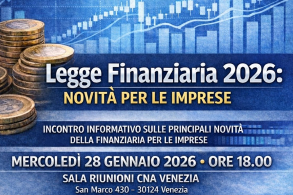 CNA Centro Storico Venezia organizza un incontro informativo dedicato alle imprese veneziane per approfondire le principali novità introdotte dalla Legge Finanziaria 2026 e analizzare le opportunità, le criticità e le ricadute concrete della nuova manovra sul tessuto produttivo locale. L’iniziativa nasce conLEGGI DI PIU'